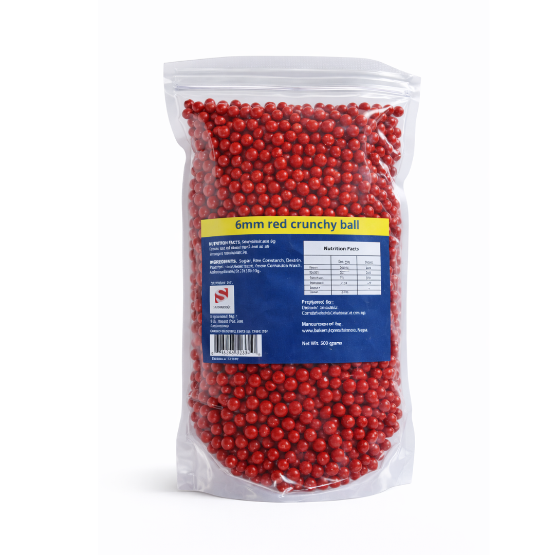 • 6mm Red Crunch Ball instantly transform your creations and makes them a treat not only for the taste buds but also for the eyes.