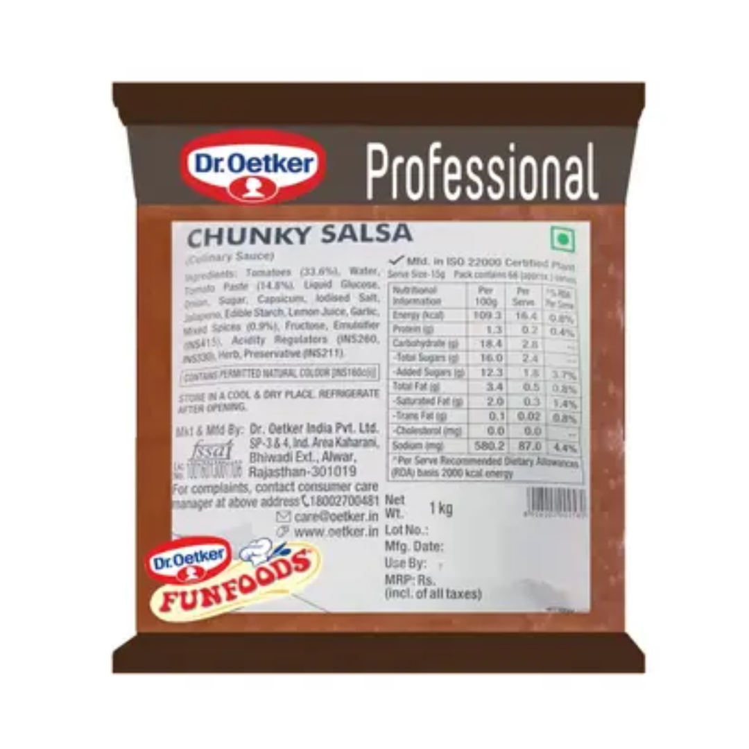 “Ingredients: Tomatoes (45%), Tomato Paste (15%), Onions, Glucose Syrup, Water, Jalapenos, Lemon Juice, Sugar, Capsicum, Iodised Salt, Mixed Spices, Acidity Regulator(Ins260), Stabilizer (Ins415), Preservatives (Ins211, Ins202).
