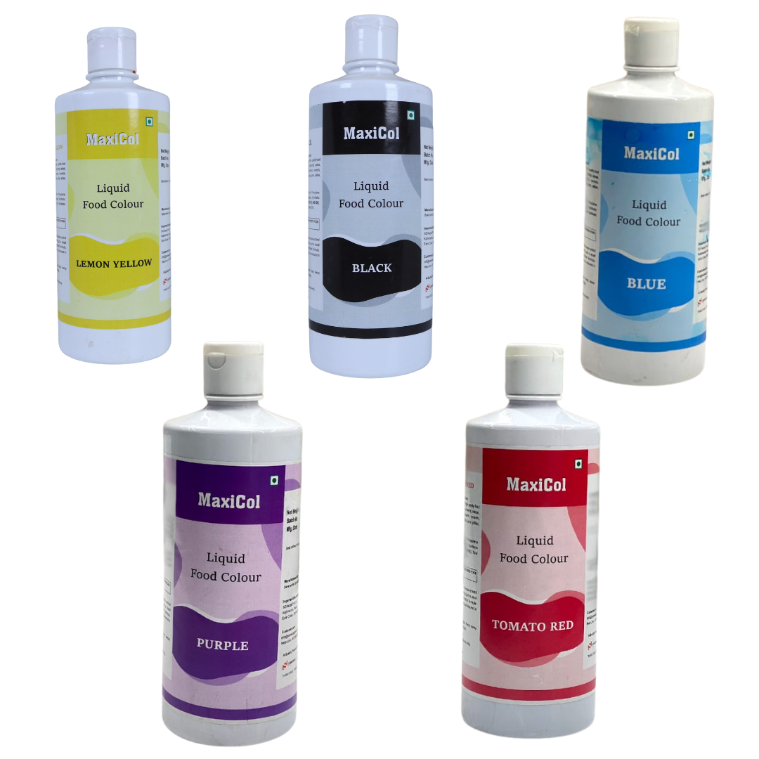 Maxicol Liquid Food Color is a highly concentrated liquid food coloring that provides a deep, rich black hue to your baked goods and desserts. It blends easily and delivers consistent, intense color without altering the texture. Perfect for cakes, icings, frostings, cookies, and other confections. Ideal for both professional and home bakers looking for a bold, striking black color.